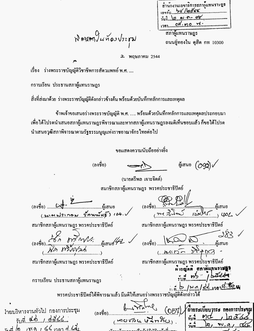 • ร่างพระราชบัญญัติวิชาชีพการสัตวแพทย์ พ.ศ. ....