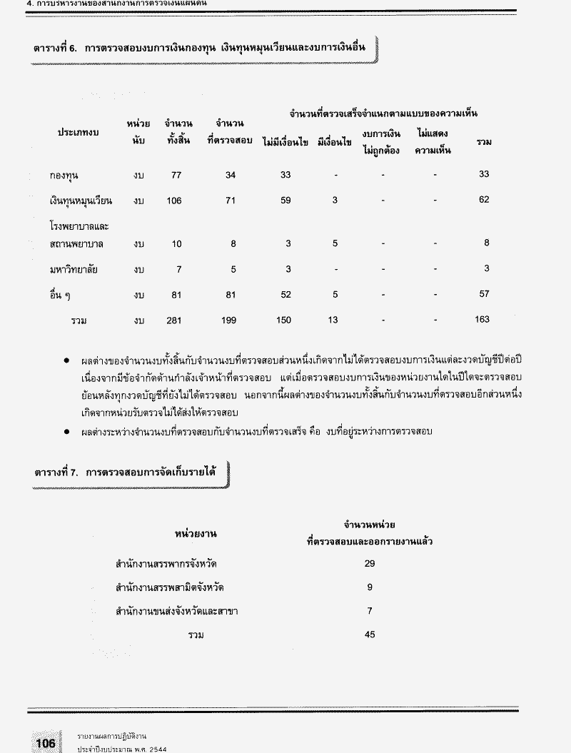 รายงานผลการปฏิบัติงานประจำปีงบประมาณ พ.ศ. 2544 ของสำนักงานการตรวจเงินแผ่นดิน