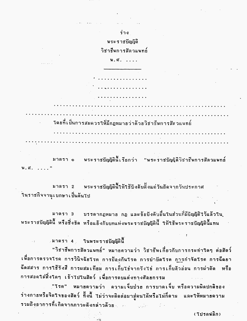 ชื่อเอกสาร :   ร่างพระราชบัญญัติวิชาชีพการสัตวแพทย์ พ.ศ. ....