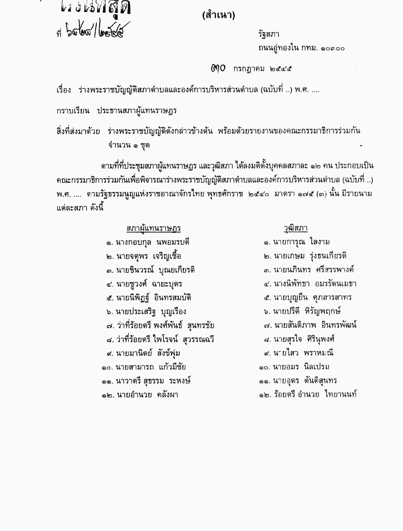 ร่างพระราชบัญญัติสภาตำบลและองค์การบริหารส่วนตำบล (ฉบับที่ ..) พ.ศ. .... ซึ่งคณะกรรมาธิการร่วมกันพิจารณาเลร็จแล้ว