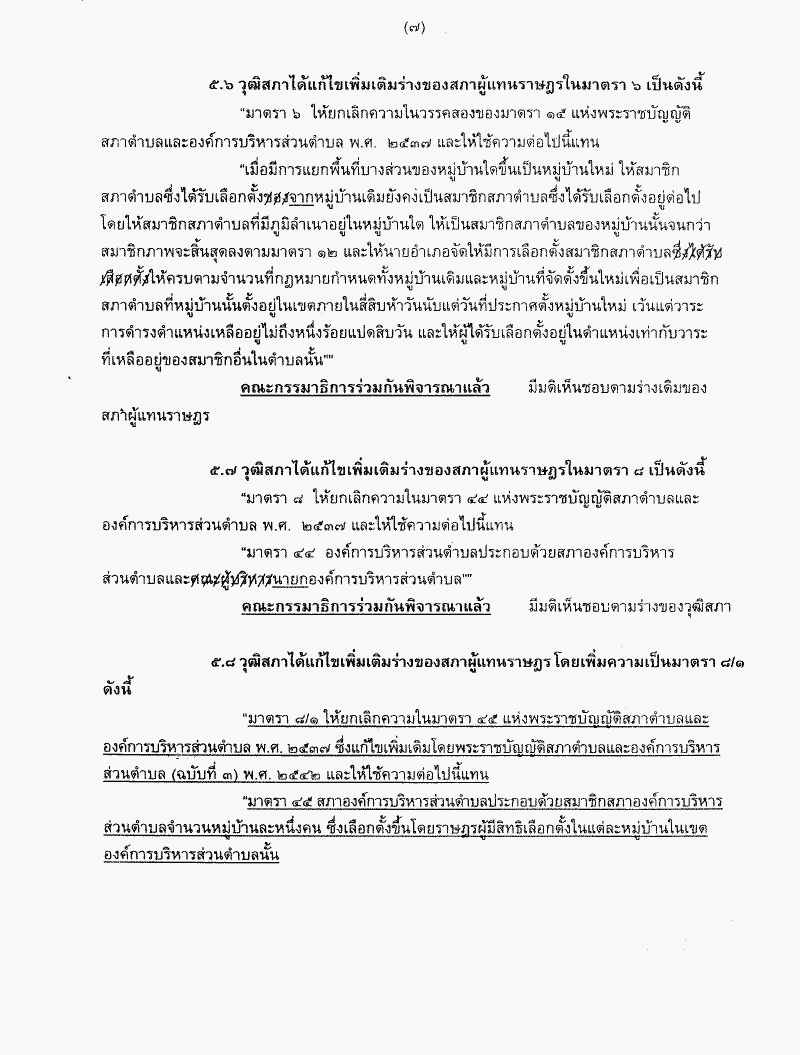 ร่างพระราชบัญญัติสภาตำบลและองค์การบริหารส่วนตำบล (ฉบับที่ ..) พ.ศ. .... ซึ่งคณะกรรมาธิการร่วมกันพิจารณาเลร็จแล้ว