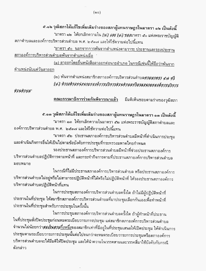 ร่างพระราชบัญญัติสภาตำบลและองค์การบริหารส่วนตำบล (ฉบับที่ ..) พ.ศ. .... ซึ่งคณะกรรมาธิการร่วมกันพิจารณาเลร็จแล้ว