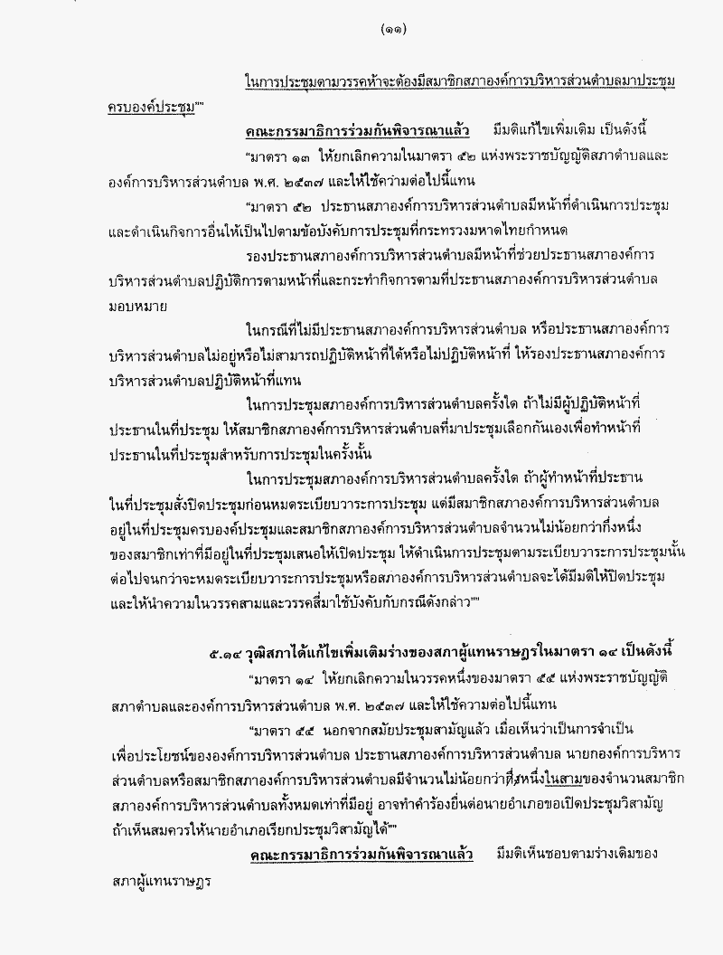 ร่างพระราชบัญญัติสภาตำบลและองค์การบริหารส่วนตำบล (ฉบับที่ ..) พ.ศ. .... ซึ่งคณะกรรมาธิการร่วมกันพิจารณาเลร็จแล้ว