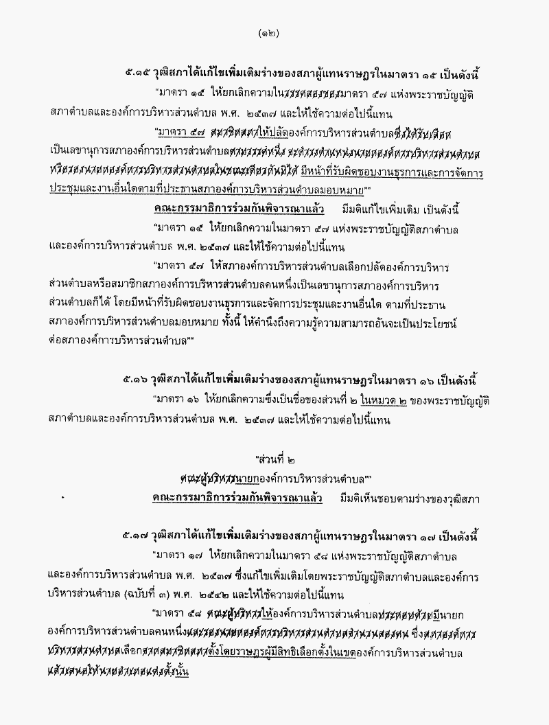 ร่างพระราชบัญญัติสภาตำบลและองค์การบริหารส่วนตำบล (ฉบับที่ ..) พ.ศ. .... ซึ่งคณะกรรมาธิการร่วมกันพิจารณาเลร็จแล้ว