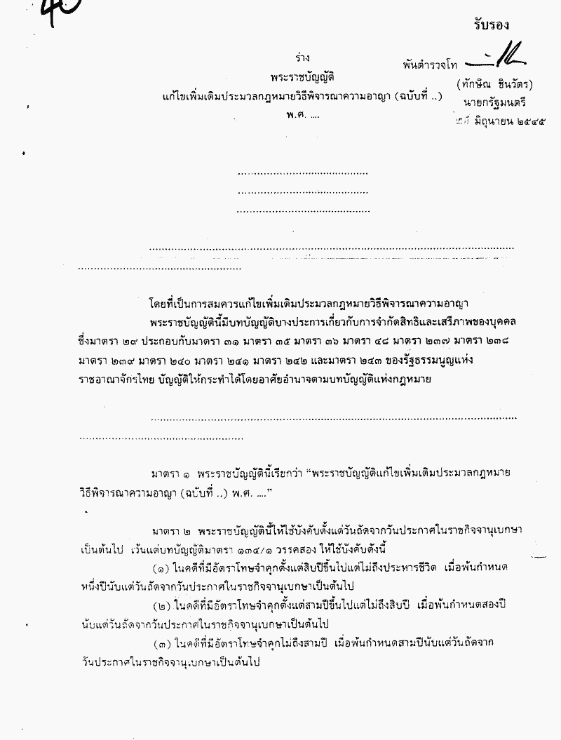 • ร่างพระราชบัญญัติแก้ไขเพิ่มเติมประมวลกฎหมายวิธีพิจารณาความอาญา(ฉบับที่..) พ. ศ.....