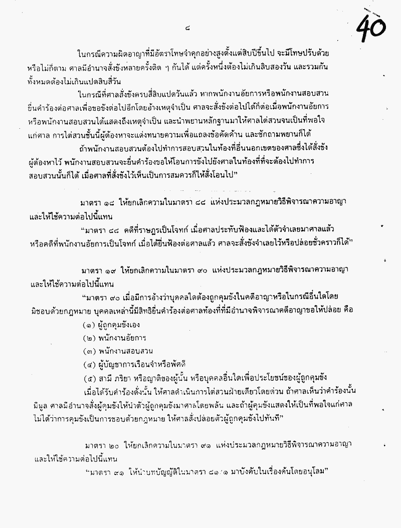ชื่อเอกสาร :   ร่างพระราชบัญญัติแก้ไขเพิ่มเติมประมวลกฎหมายวิธีพิจารณาความอาญา(ฉบับที่..) พ. ศ..... (นายอำนวย คลังผา และนายพายัพ ปั้นเกตุ เป็นผู้เสนอ)