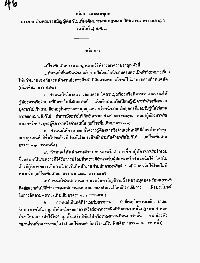 • ร่างพระราชบัญญัติแก้ไขเพิ่มเติมประมวลกฎหมายวิธีพิจารณาความอาญา (ฉบับที่..) พ.ศ. ....