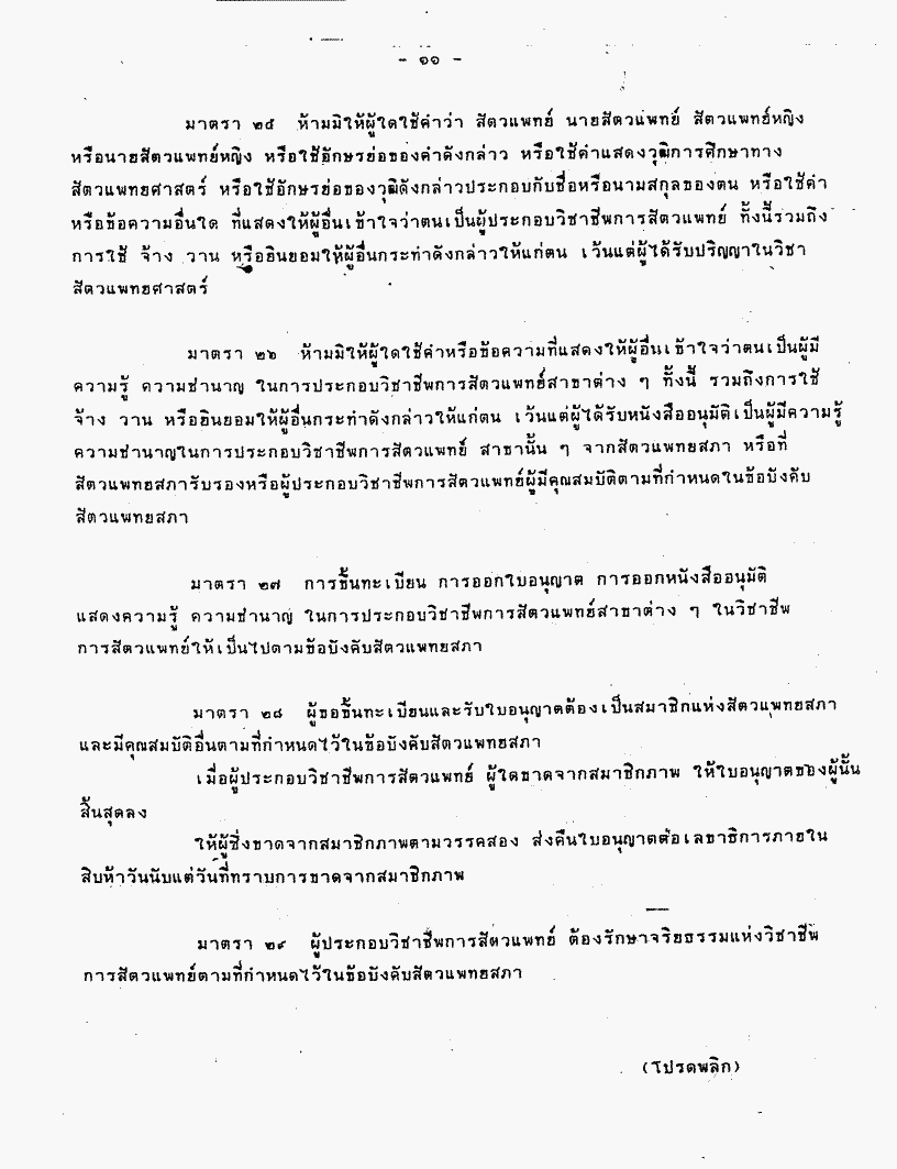 ชื่อเอกสาร :   ร่างพระราชบัญญัติวิชาชีพการสัตวแพทย์ พ.ศ. ....