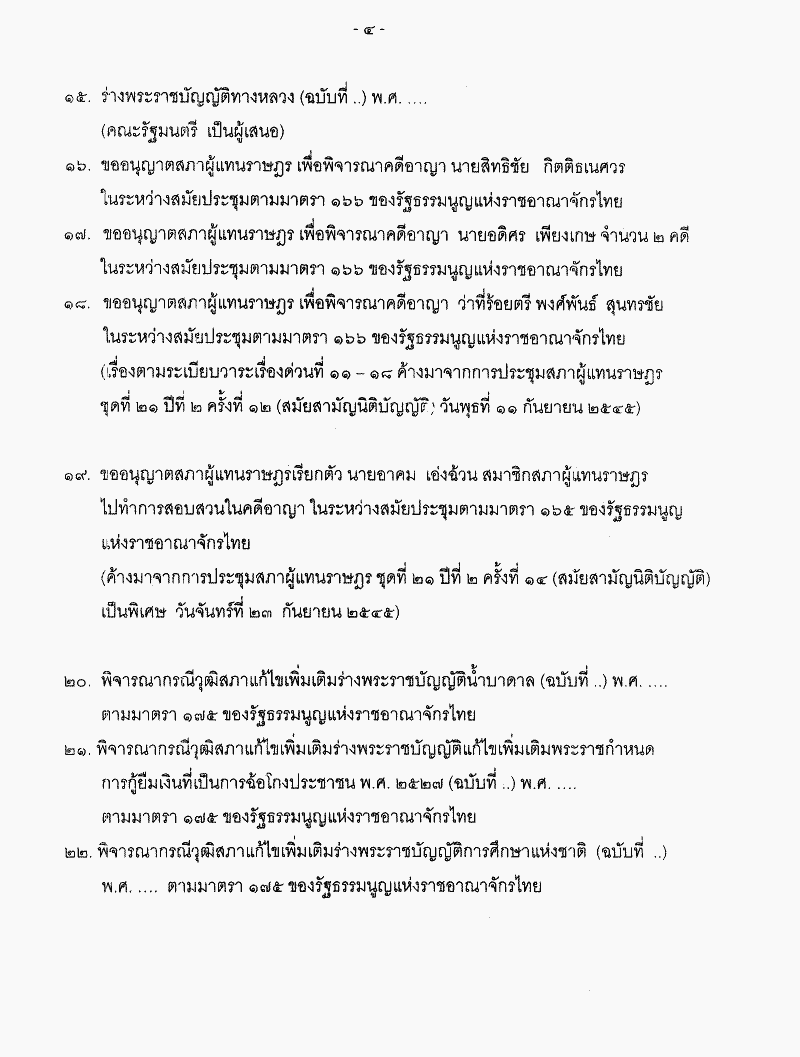 • ระเบียบวาระการประชุมสภาผู้แทนราษฎร ชุดที่ 21 ปีที่ 2 ครั้งที่ 26 (สมัยสามัญนิติบัญญัติ) วันพุธที่ 6 พฤศจิกายน 2545