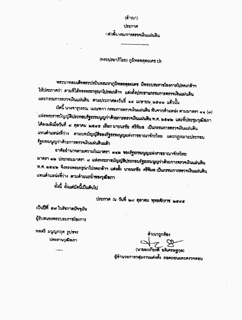 ประกาศแต่งตั้งกรรมการตรวจเงินแผ่นดิน |