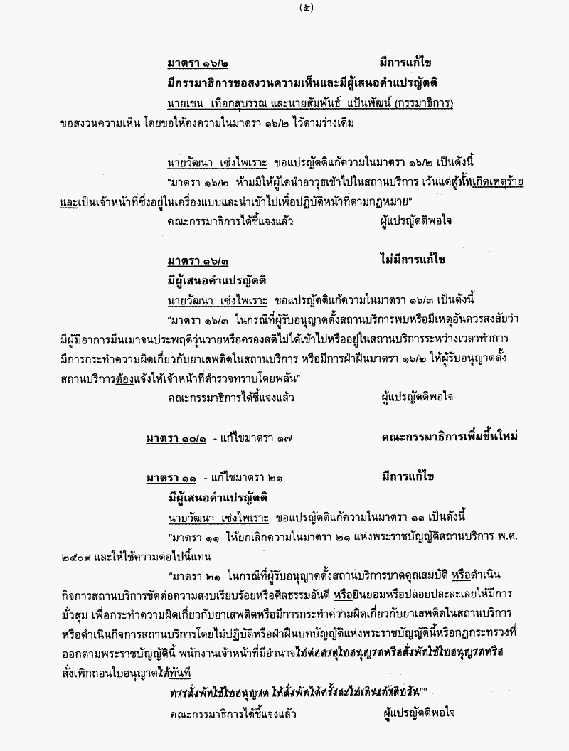 ร่างพระราชบัญญัติสถานบริการ (ฉบับที่ ...) พ.ศ.....