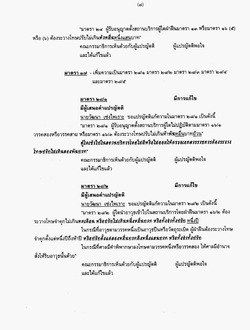 ร่างพระราชบัญญัติสถานบริการ (ฉบับที่ ...) พ.ศ..... ซึ่งคณะกรรมาธิการวิสามัญพิจารณาเสร็จแล้ว