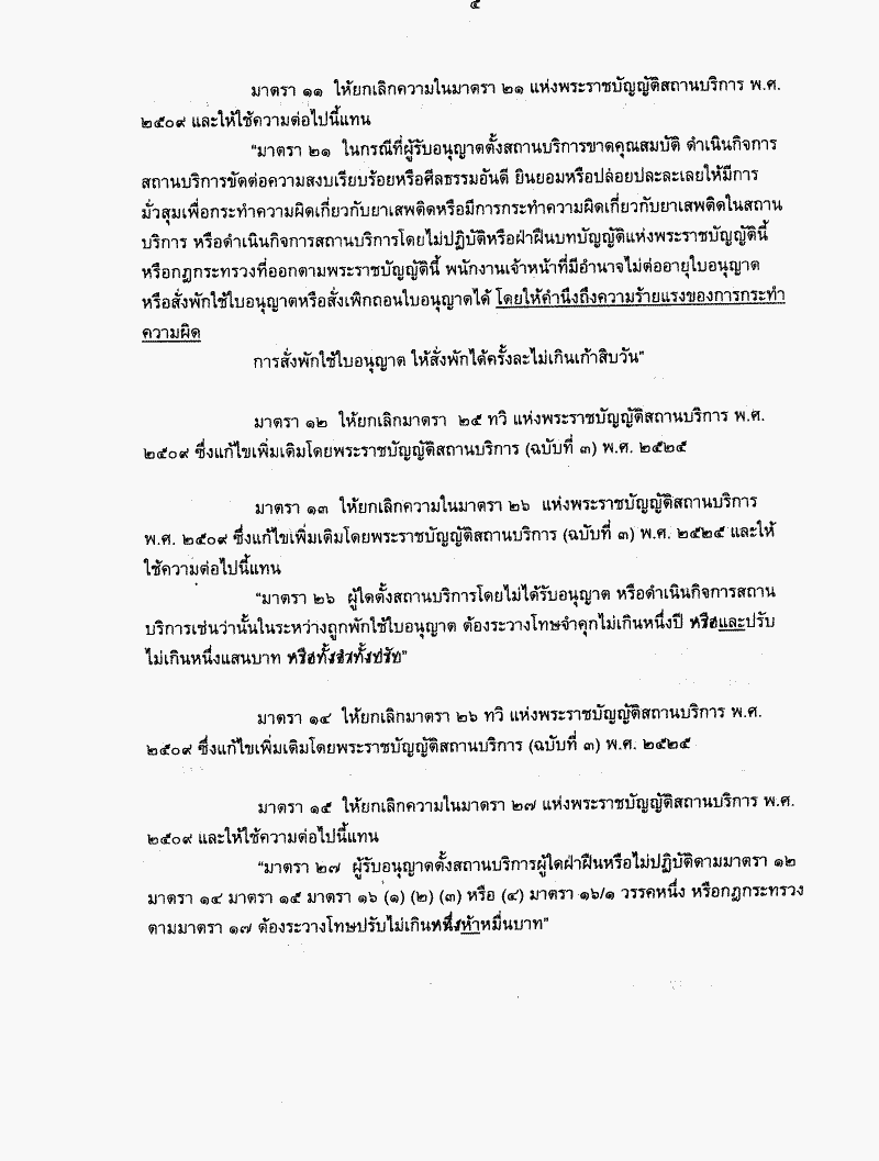 ร่างพระราชบัญญัติสถานบริการ (ฉบับที่ ...) พ.ศ.....