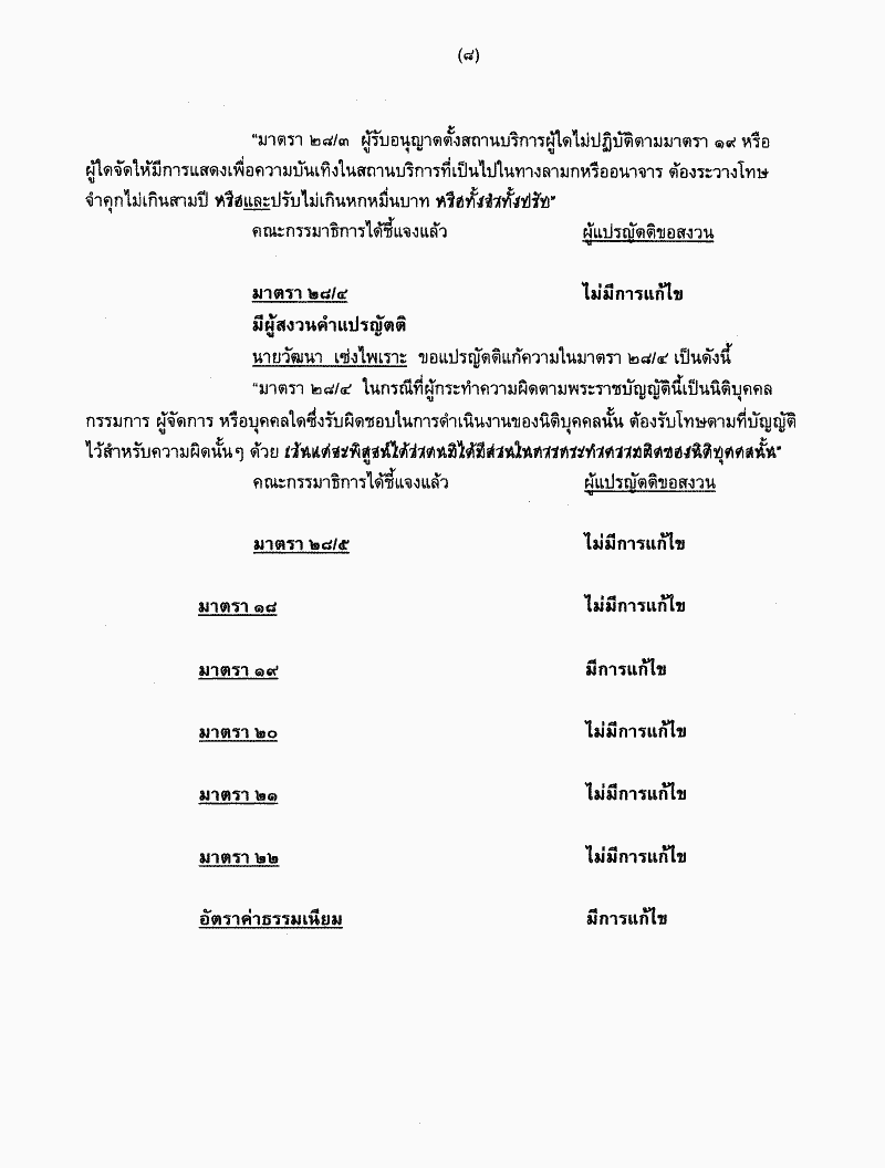 ร่างพระราชบัญญัติสถานบริการ (ฉบับที่ ...) พ.ศ..... ซึ่งคณะกรรมาธิการวิสามัญพิจารณาเสร็จแล้ว