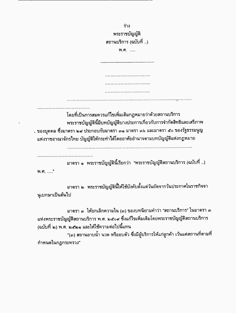 ร่างพระราชบัญญัติสถานบริการ (ฉบับที่ ...) พ.ศ.....
