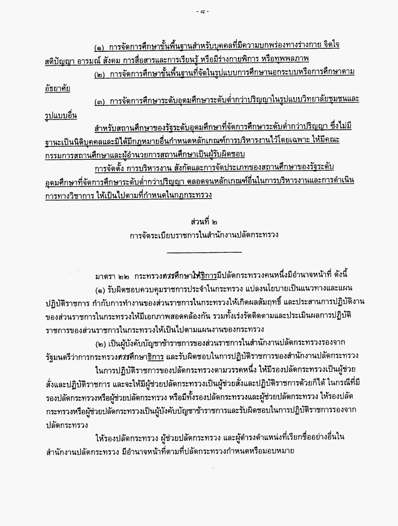 ร่างพระราชบัญญัติระเบียบบริหารราชการกระทรวงการศึกษา พ.ศ. .... ซึ่งคณะกรรมาธิการวิสามัญพิจารณาเสร็จแล้ว