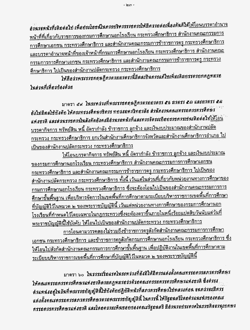 ร่างพระราชบัญญัติระเบียบบริหารราชการกระทรวงการศึกษา พ.ศ. .... ซึ่งคณะกรรมาธิการวิสามัญพิจารณาเสร็จแล้ว