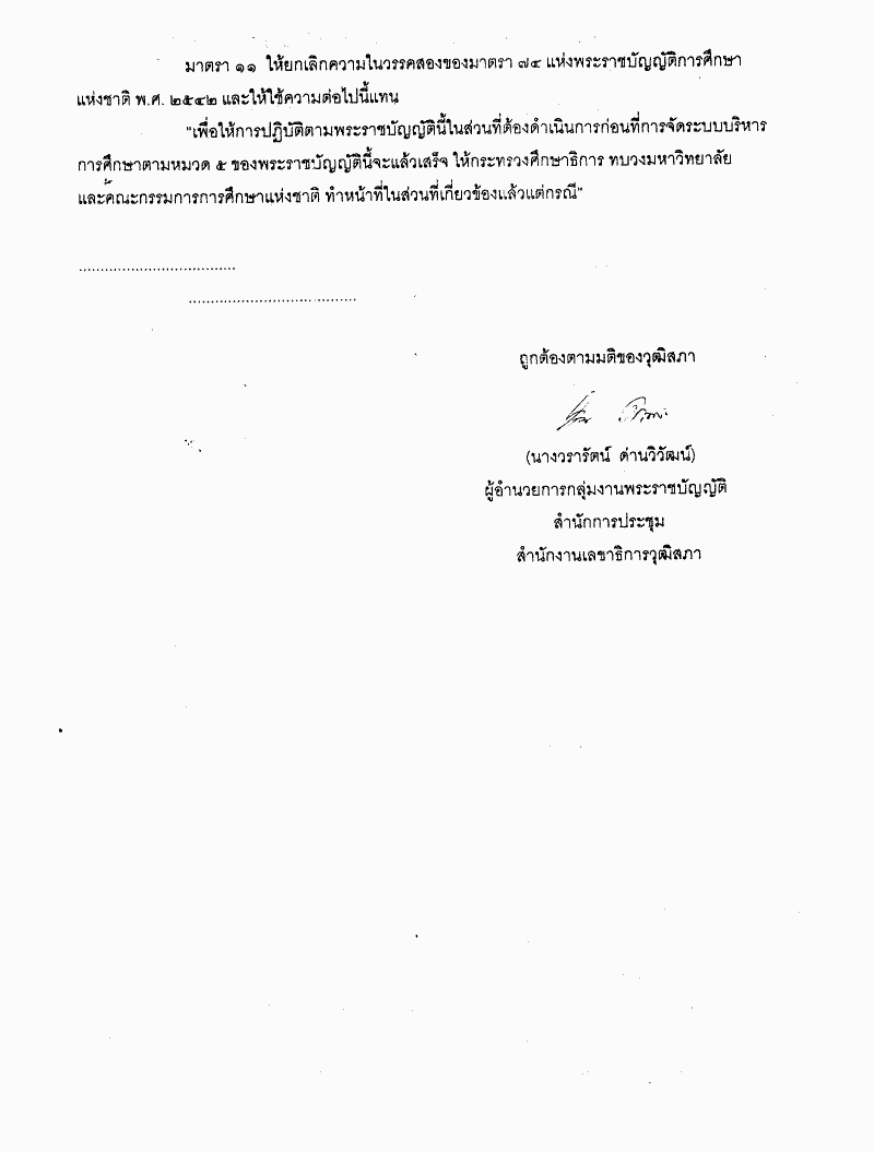 พิจารณากรณีวุฒิสภาแก้ไขเพิ่มเติมร่างพระราชบัญญัติการศึกษาแห่งชาติ (ฉบับที่..) พ.ศ..... ตามมาตรา 175 ของรัฐธรรมนูญแห่งราชอาณาจักรไทย |