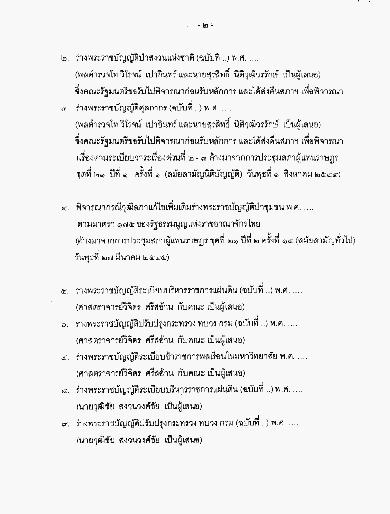 • ระเบียบวาระการประชุมสภาผู้แทนราษฎร ชุดที่ 21 ปีที่ 2 ครั้งที่ 28 (สมัยสามัญนิติบัญญัติ) วันพุธที่ 13 พฤศจิกายน 2545