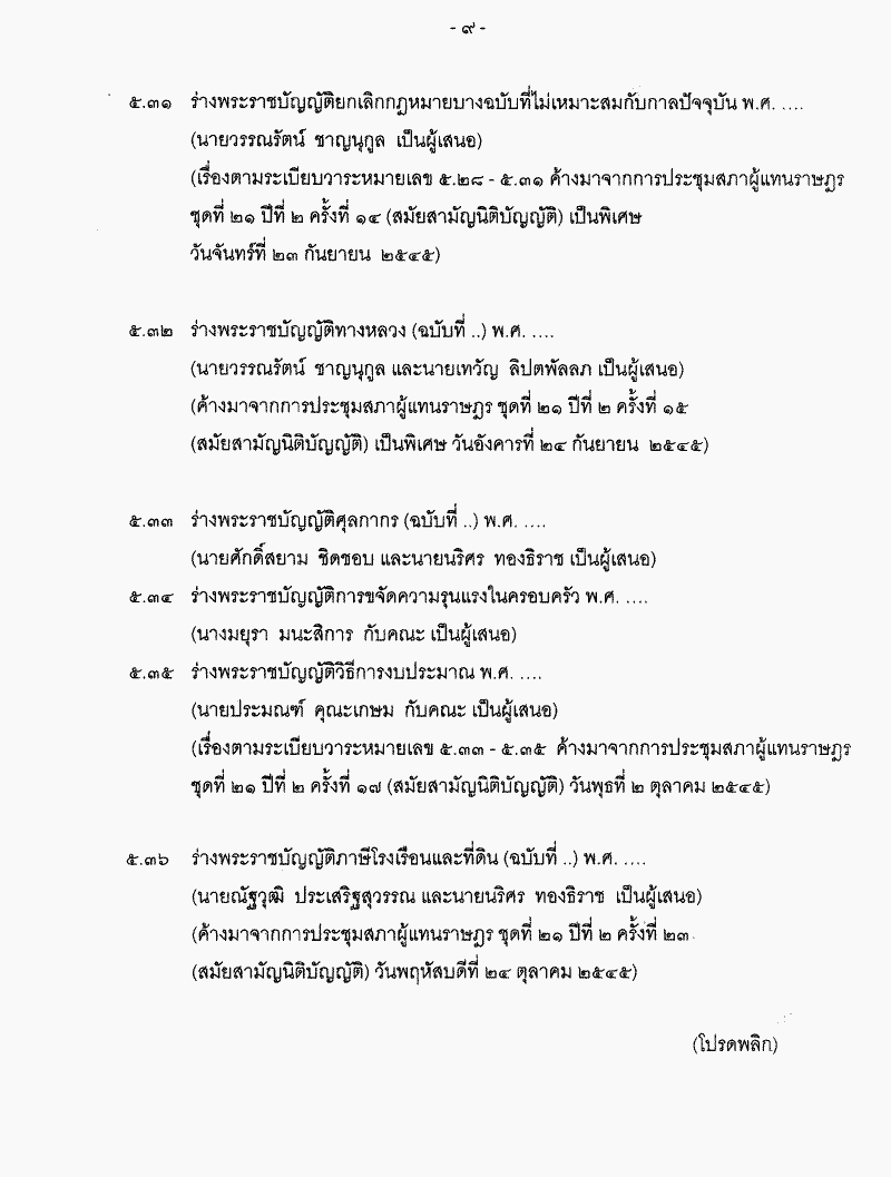 ระเบียบวาระการประชุมสภาผู้แทนราษฎร ชุดที่ 21 ปีที่ 2 ครั้งที่ 28 (สมัยสามัญนิติบัญญัติ) วันพุธที่ 13 พฤศจิกายน 2545 |