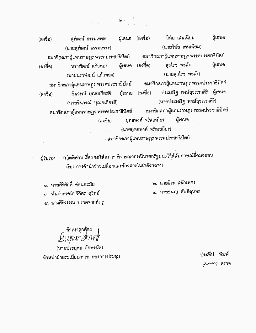 ชื่อเอกสาร :   ญัติติ เรื่อง ขอให้สภาฯ พิจารณากรณีนายกรัฐมนตรีให้สัมภาษณ์สื่อมวลชนเรื่องการจำนำข้าวเปลือกและข้าวสารในโกดังกลาง (นายไพฑูรย์ แก้วทอง กับคณะ เป็นผู้เสนอ)