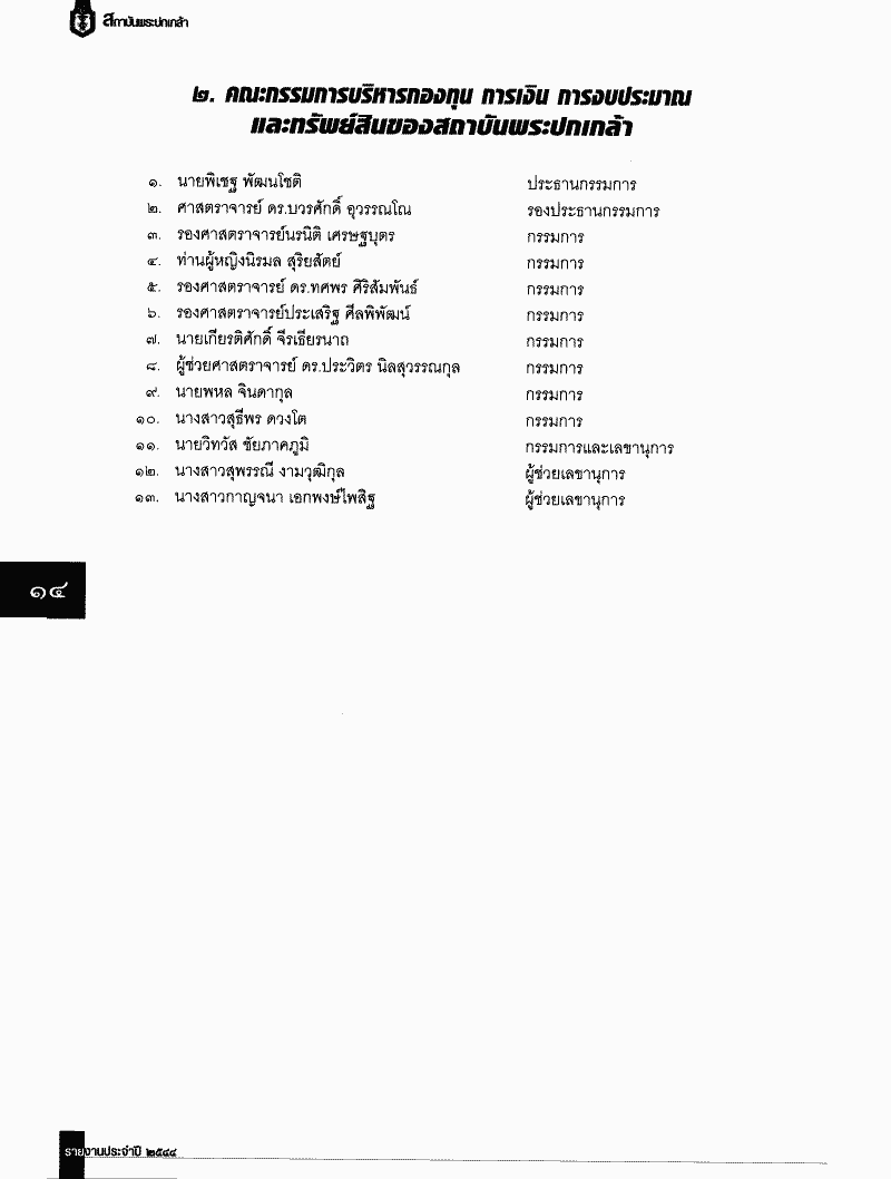 รับทราบรายงานประจำปี 2544 ของสถาบันพระปกเกล้า