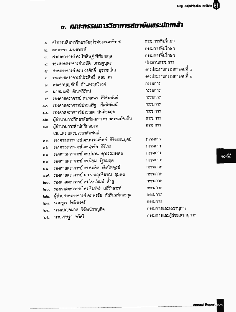 รับทราบรายงานประจำปี 2544 ของสถาบันพระปกเกล้า