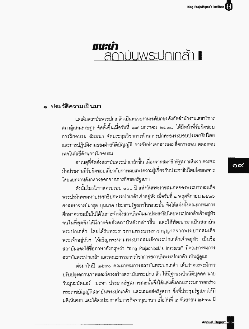 ขอส่งรายงานประจำปี 2544 ของสถาบันพระปกเกล้า