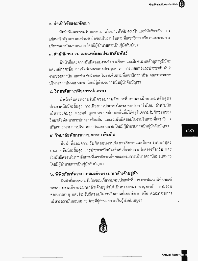 ขอส่งรายงานประจำปี 2544 ของสถาบันพระปกเกล้า