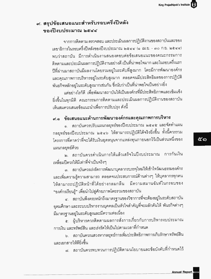 ขอส่งรายงานประจำปี 2544 ของสถาบันพระปกเกล้า