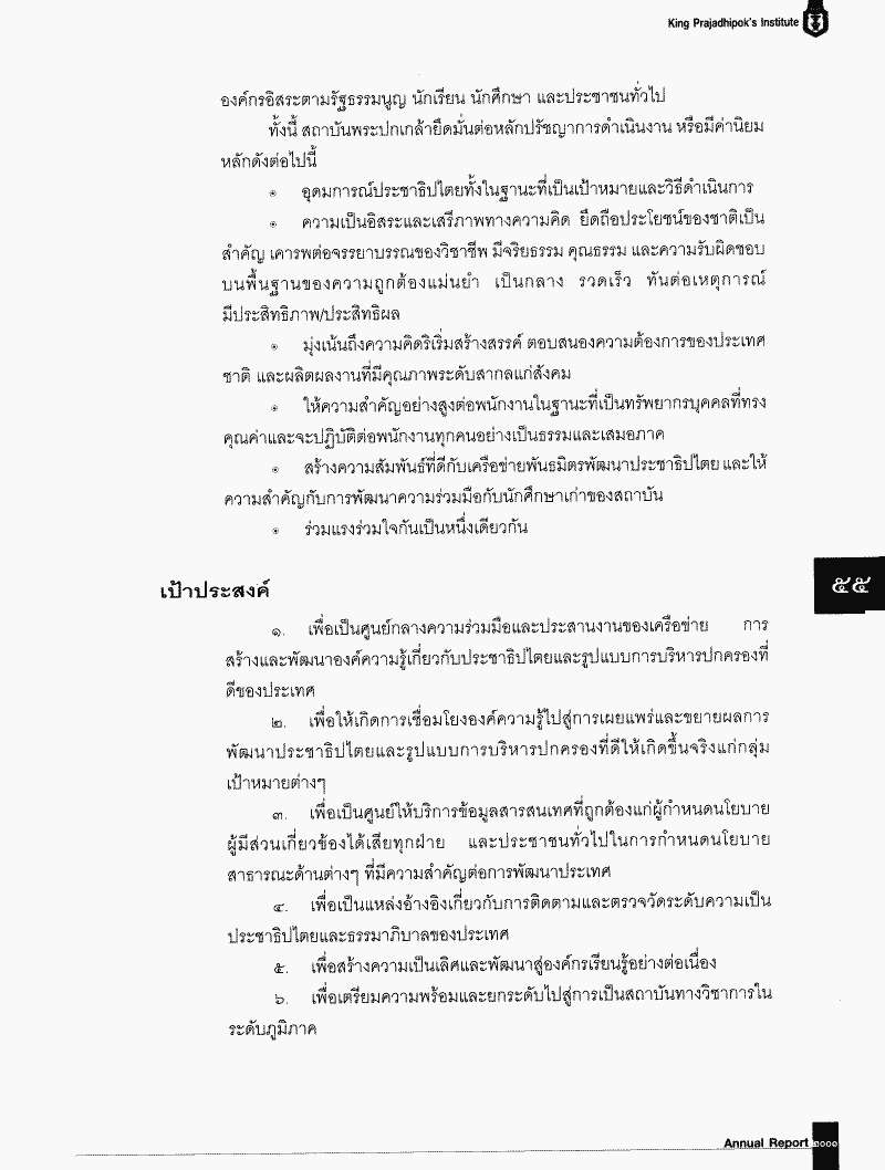 ขอส่งรายงานประจำปี 2544 ของสถาบันพระปกเกล้า