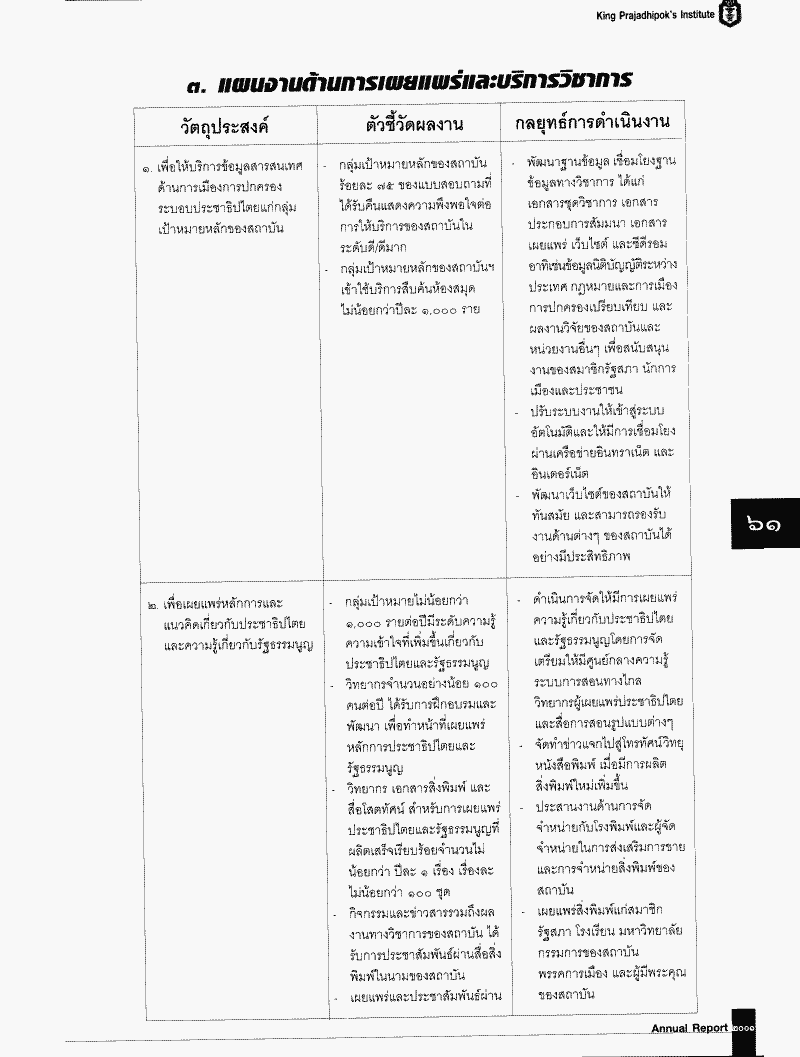 ขอส่งรายงานประจำปี 2544 ของสถาบันพระปกเกล้า