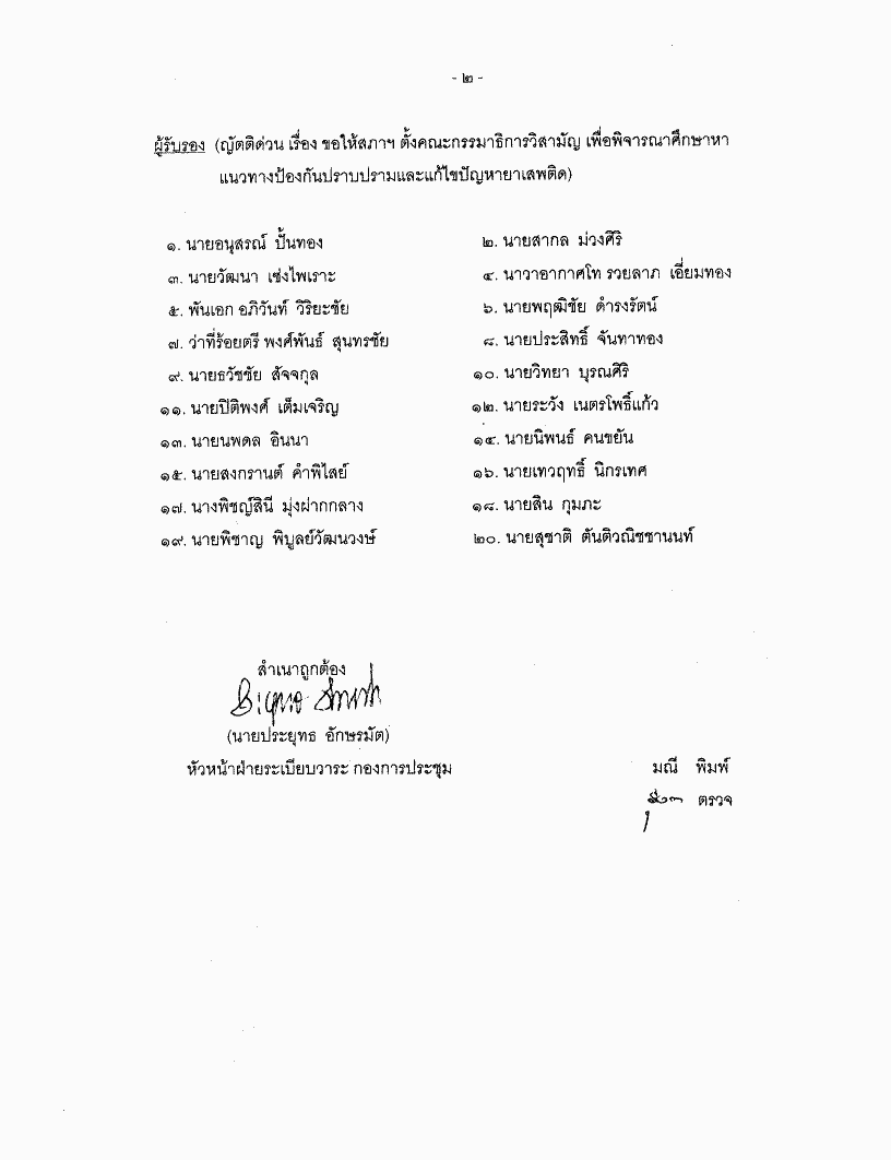 ขอเสนอญัตติด่วน เรื่อง ขอให้สภาฯ ตั้งคณะกรรมาธิการวิสามัญ เพื่อพิจารณาศึกษาแนวทางป้องกันปราบปรามและแก้ไขปัญหายาเสพติด |