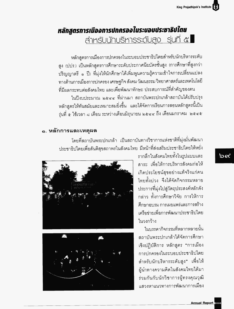 ขอส่งรายงานประจำปี 2544 ของสถาบันพระปกเกล้า