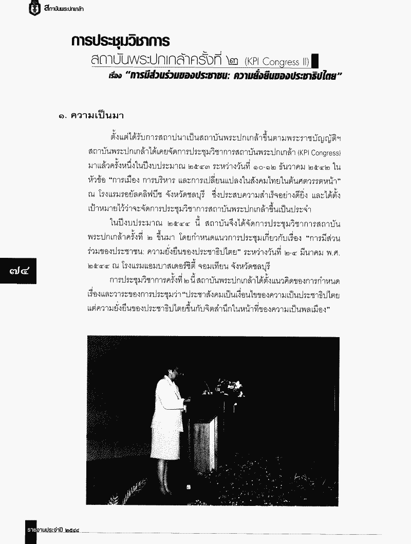 ขอส่งรายงานประจำปี 2544 ของสถาบันพระปกเกล้า