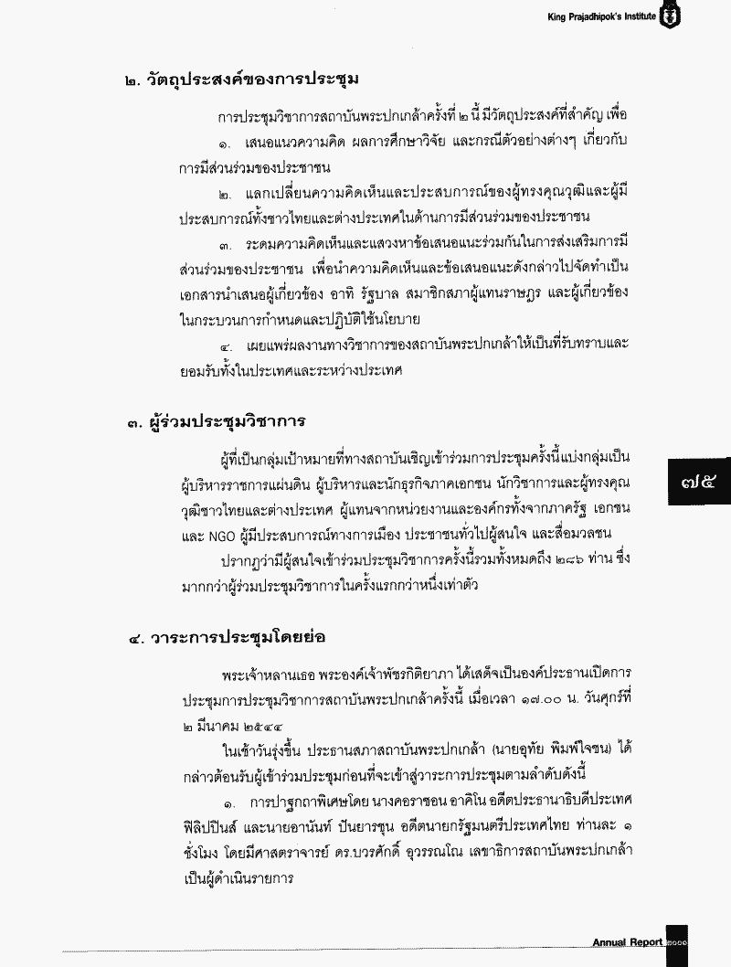 ขอส่งรายงานประจำปี 2544 ของสถาบันพระปกเกล้า