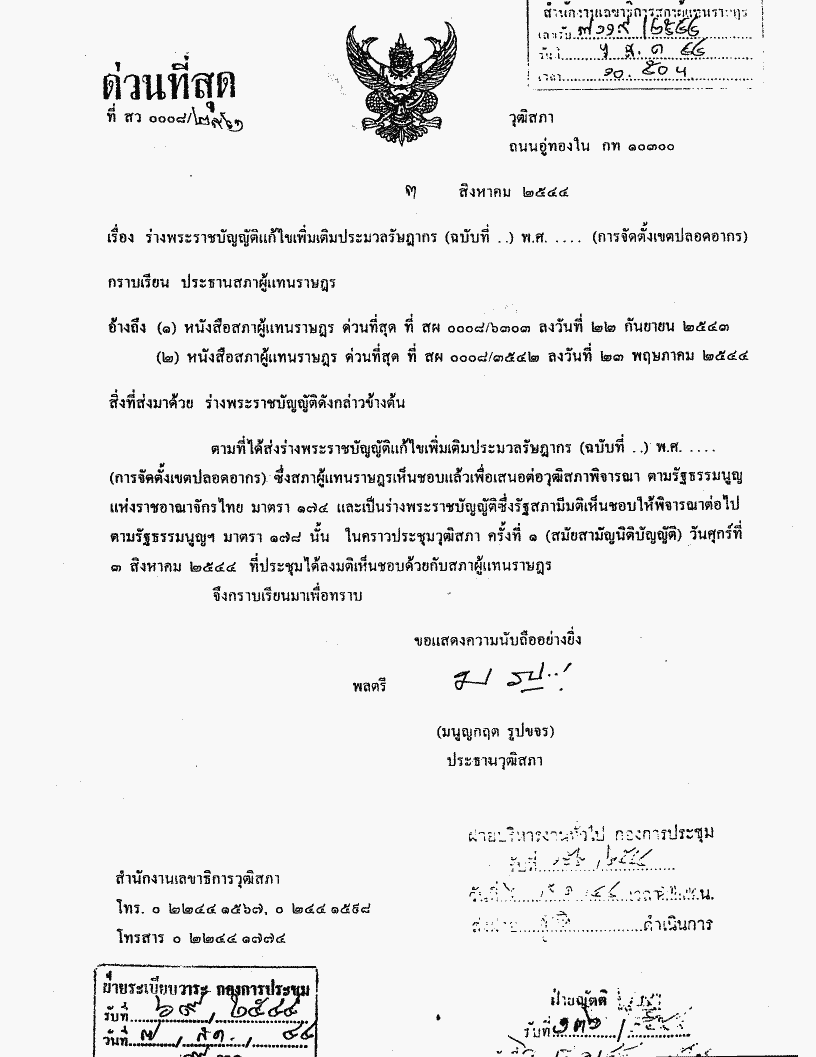 ร่างพระราชบัญญัติแก้ไขเพิ่มเติมประมวลรัษฎากร (ฉบับที่ ..) พ.ศ. .... (การจัดตั้งเขตปลอดอากร) |