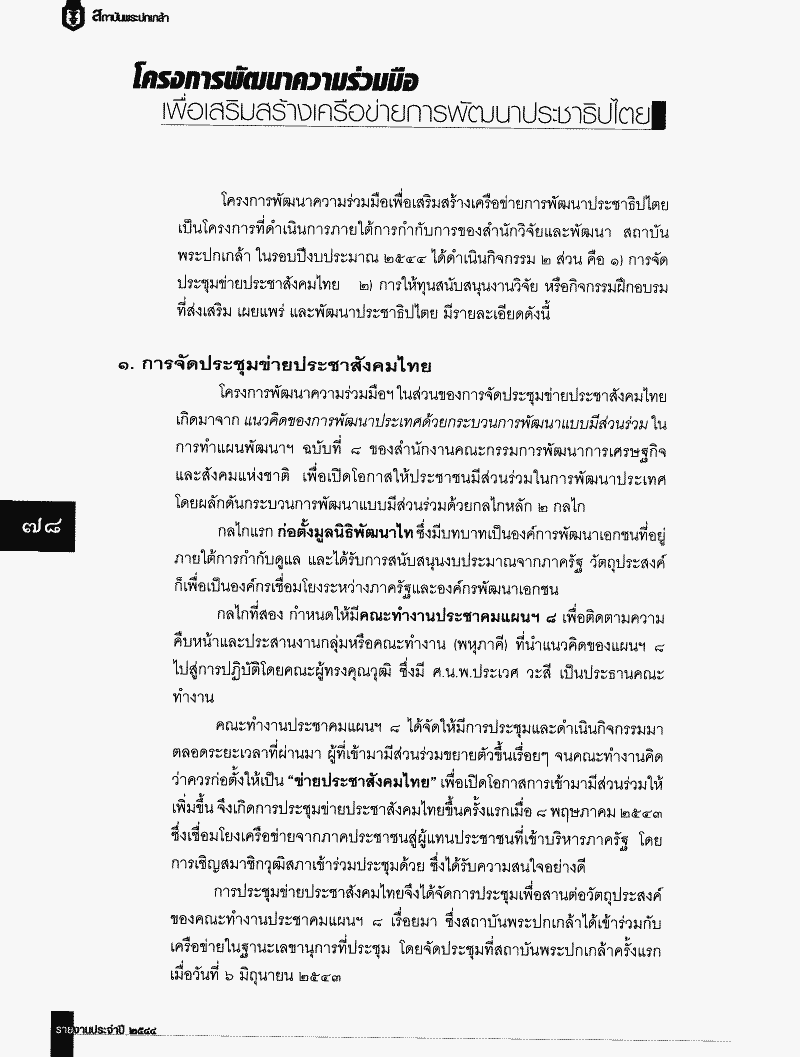 ขอส่งรายงานประจำปี 2544 ของสถาบันพระปกเกล้า