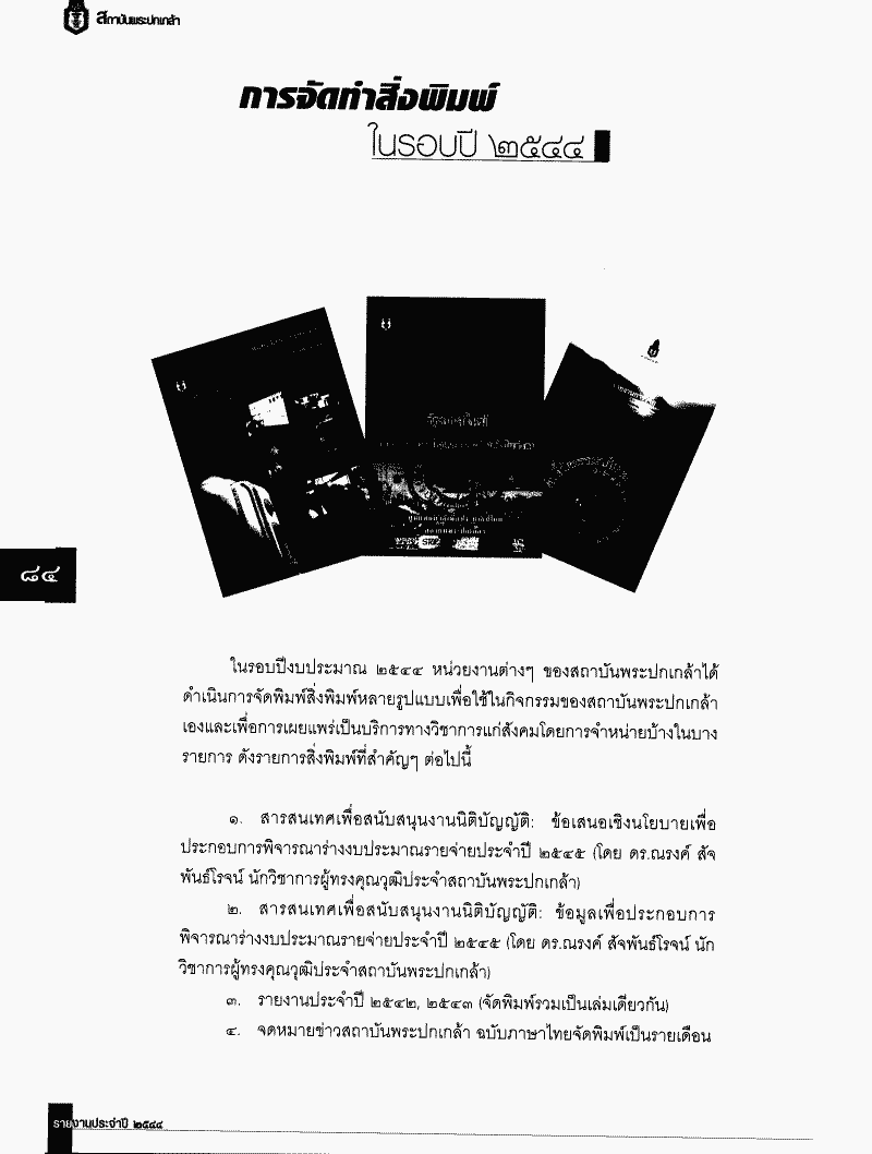 ขอส่งรายงานประจำปี 2544 ของสถาบันพระปกเกล้า
