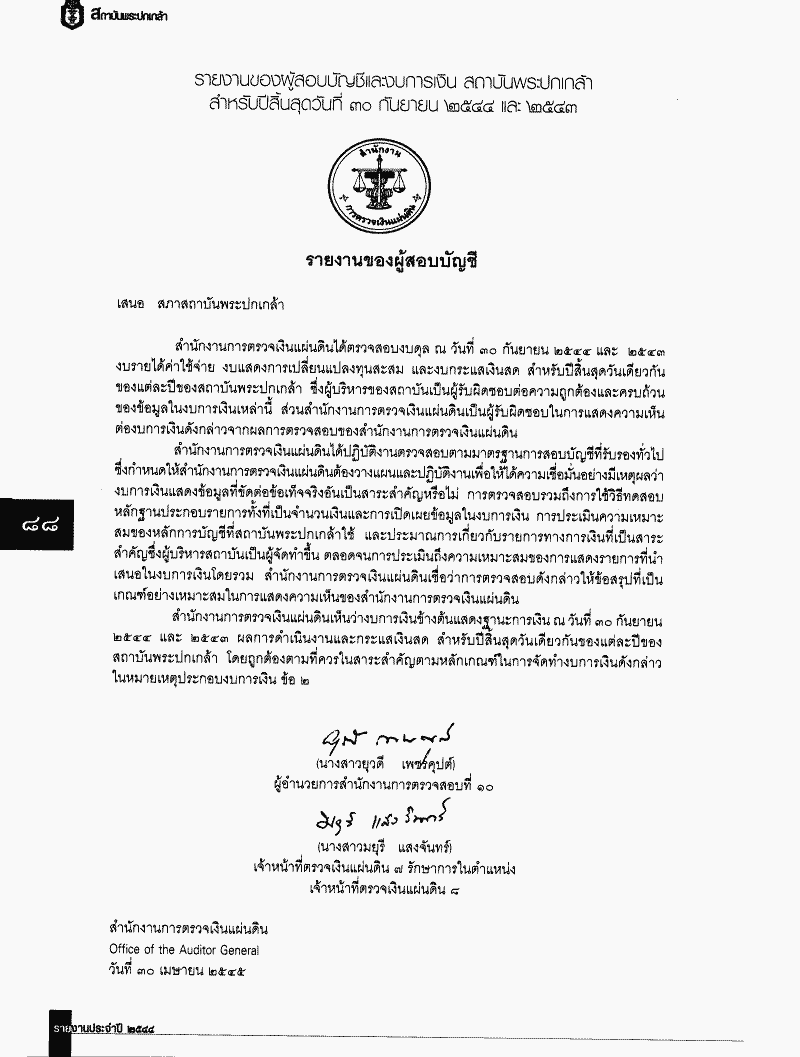 ขอส่งรายงานประจำปี 2544 ของสถาบันพระปกเกล้า