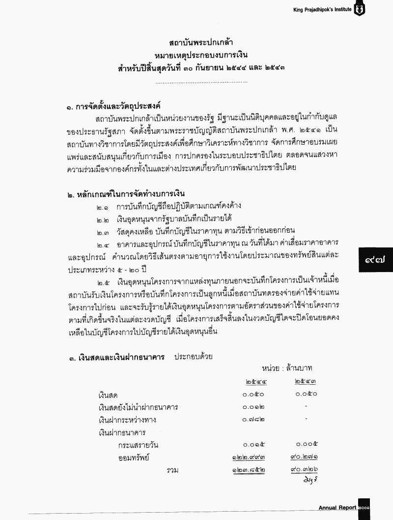 ขอส่งรายงานประจำปี 2544 ของสถาบันพระปกเกล้า
