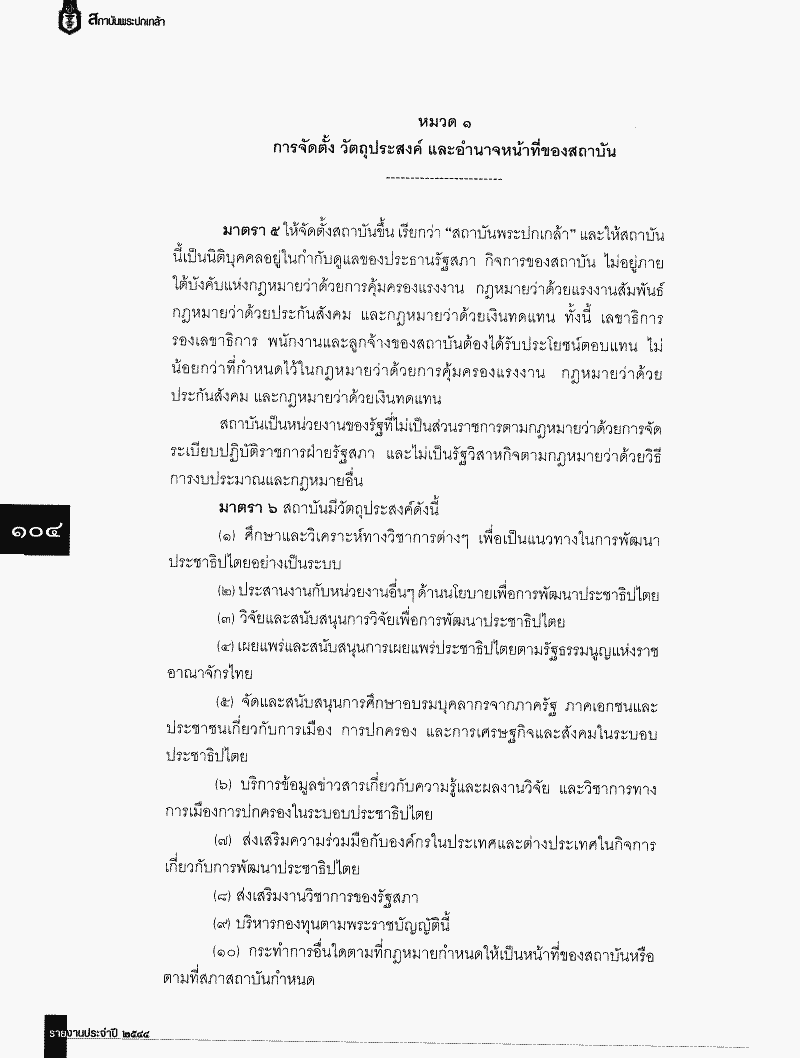 ขอส่งรายงานประจำปี 2544 ของสถาบันพระปกเกล้า