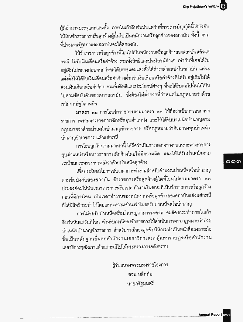 ขอส่งรายงานประจำปี 2544 ของสถาบันพระปกเกล้า