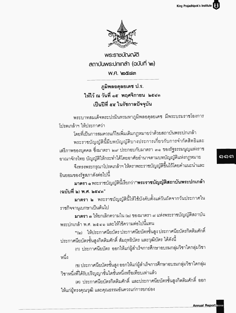 ขอส่งรายงานประจำปี 2544 ของสถาบันพระปกเกล้า
