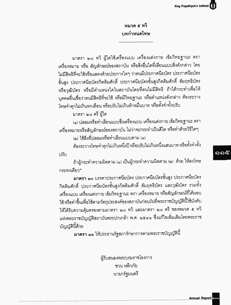 ขอส่งรายงานประจำปี 2544 ของสถาบันพระปกเกล้า