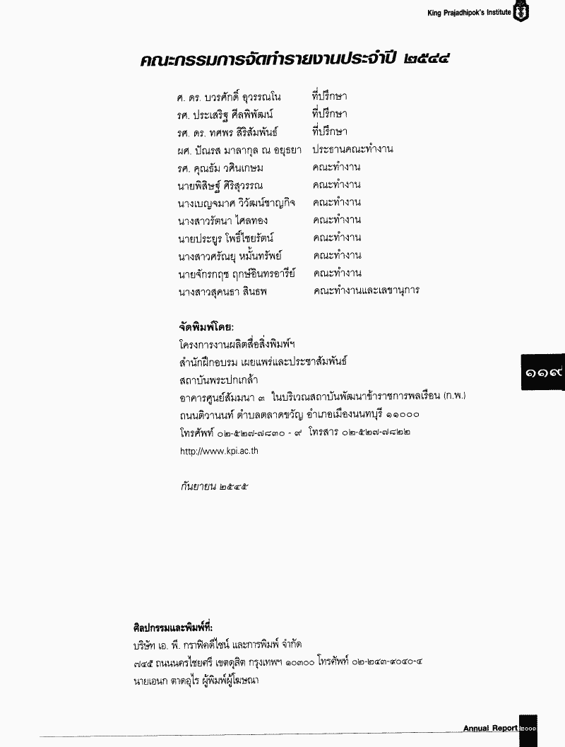 ขอส่งรายงานประจำปี 2544 ของสถาบันพระปกเกล้า