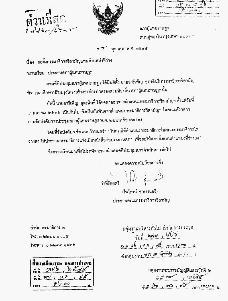 ขอตั้งกรรมาธิการวิสามัญแทนตำแหน่งที่ว่าง |