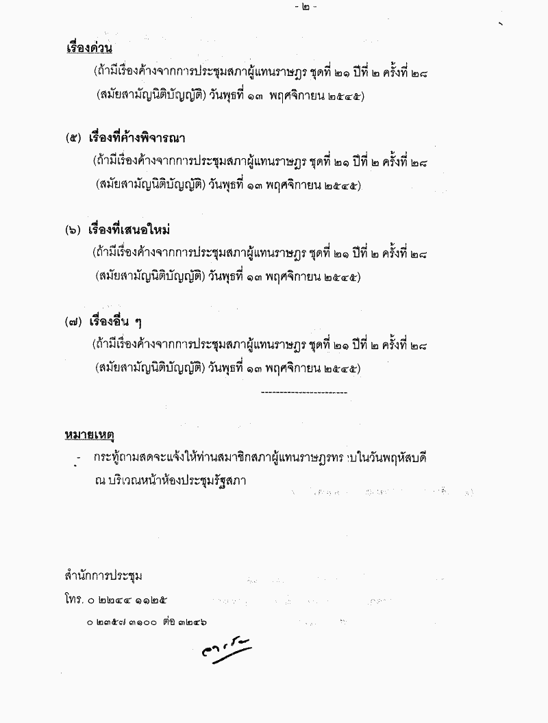 • ระเบียบวาระการประชุมสภาผู้แทนราษฎร ชุดที่ 21 ปีที่ 2 ครั้งที่ 29 (สมัยสามัญนิติบัญญัติ) วันพฤหัสบดีที่ 14 พฤศจิกายน 2545
