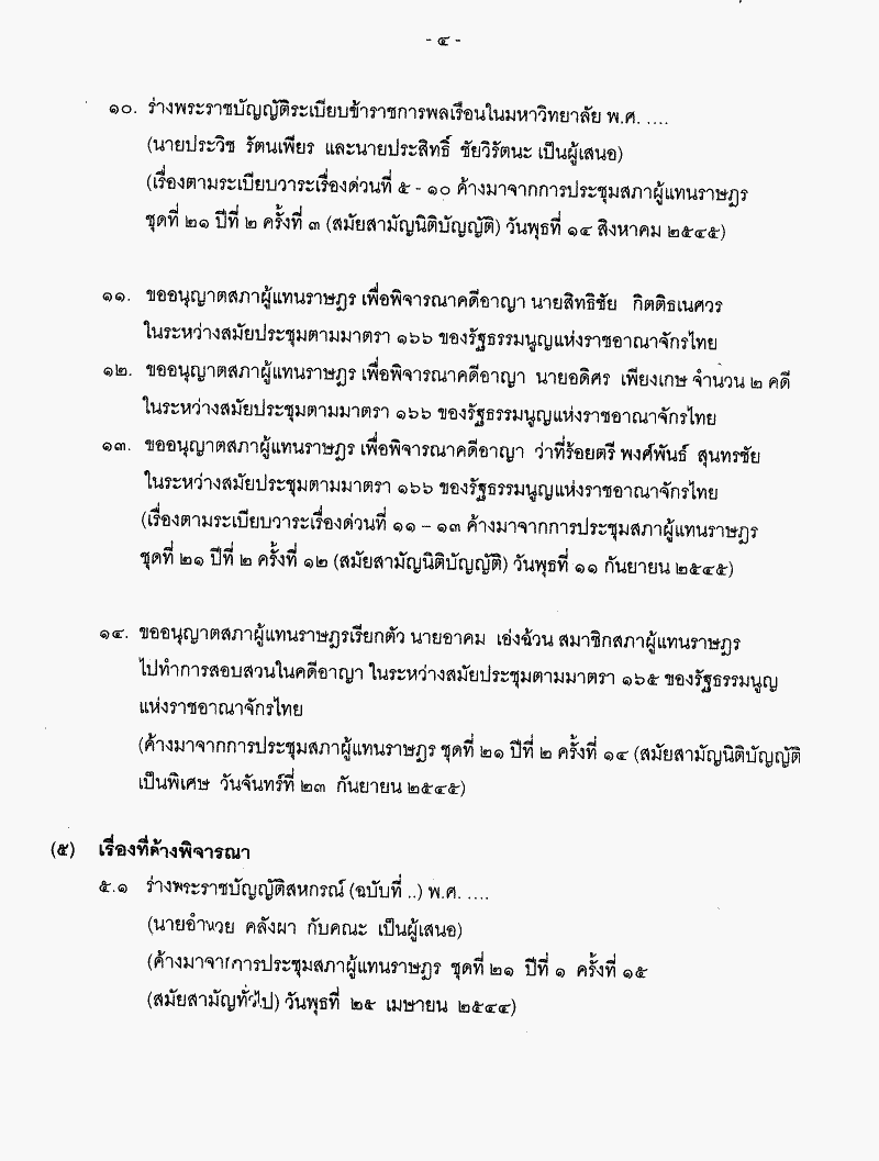 • ระเบียบวาระการประชุมสภาผู้แทนราษฎร ชุดที่ 21 ปีที่ 2 ครั้งที่ 30 (สมัยสามัญนิติบัญญัติ) วันพุธที่ 20 พฤศจิกายน 2545