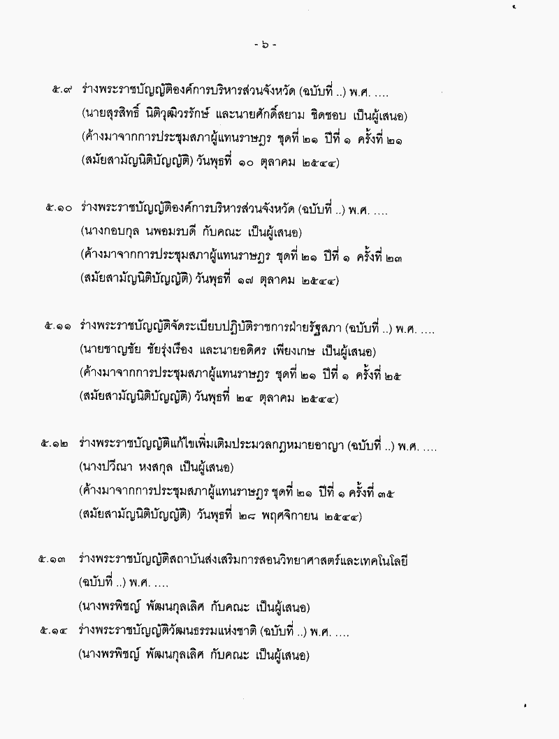 • ระเบียบวาระการประชุมสภาผู้แทนราษฎร ชุดที่ 21 ปีที่ 2 ครั้งที่ 30 (สมัยสามัญนิติบัญญัติ) วันพุธที่ 20 พฤศจิกายน 2545